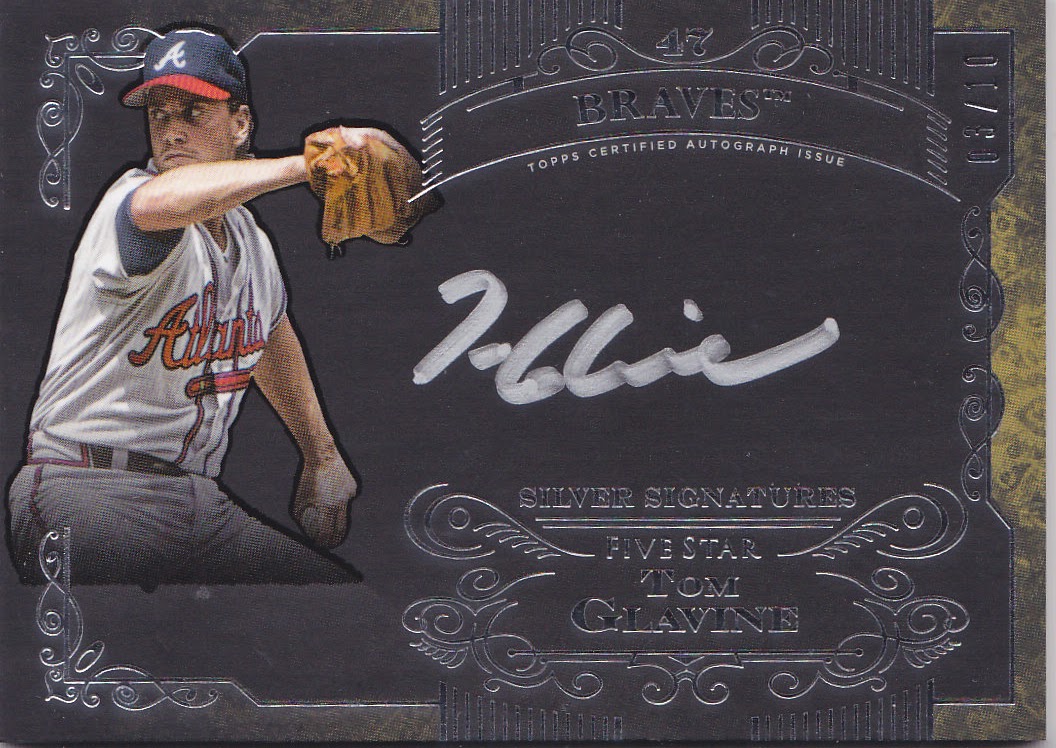 I have been a fan of Tom Glavine since he pitched in the first baseball game I ever attended. In that game he almost threw a no-hitter against the Rockies. These are currently all the Glavine baseball cards I have so if you have anything that's not on the list, be it a base card, an autographed card or a relic card, do check out my Trade Bait page and let's make a trade !!
